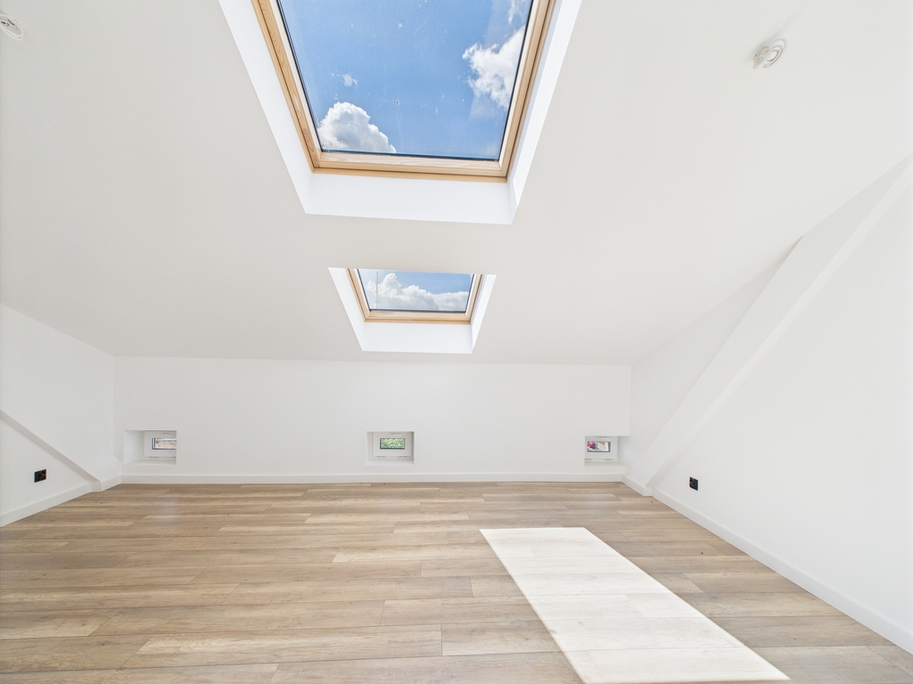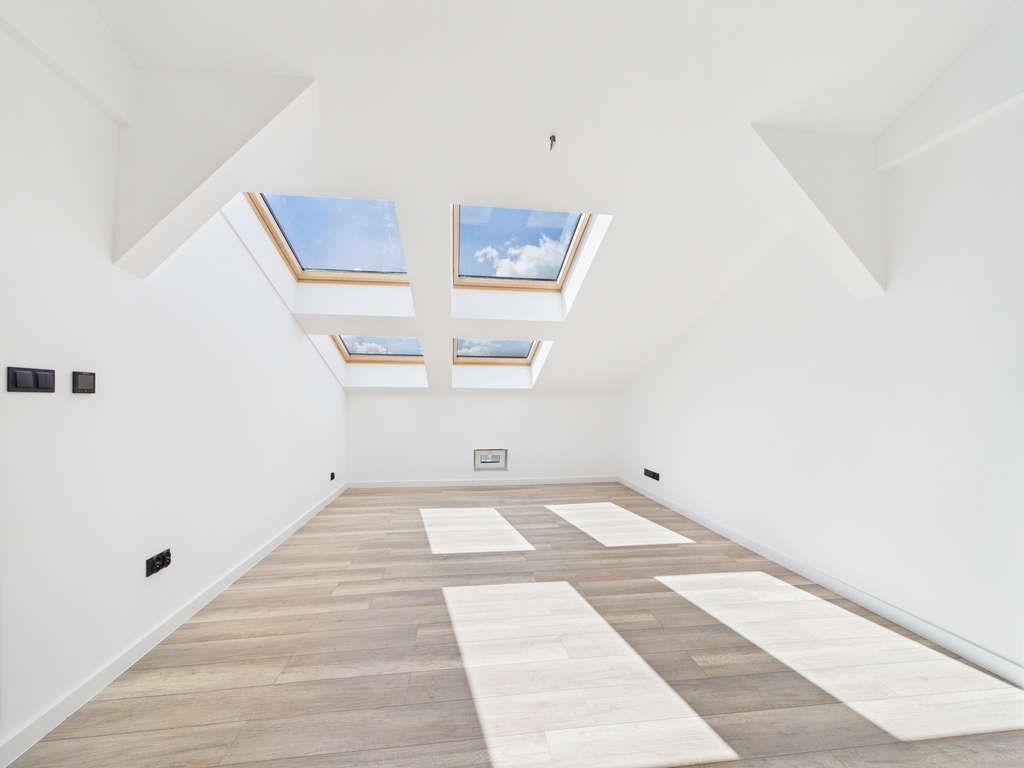 * duże okna dachowe, które wypełniają wnętrze naturalnym światłem i tworzą unikalny klimat;