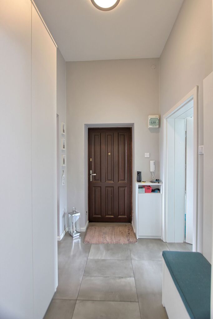 Po wejściu przez drzwi wejściowe znajduje się mały korytarz rozdzielający następne pomieszczenia