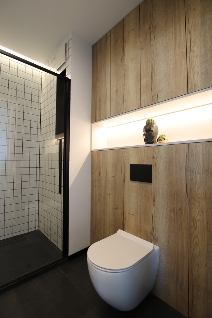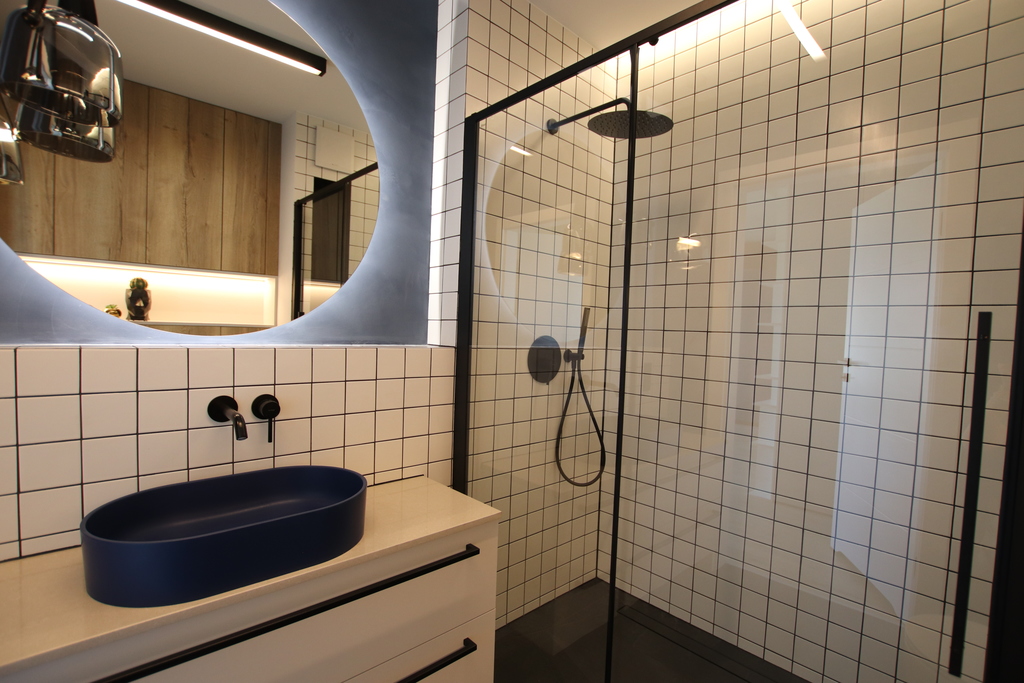 ✔ Łazienka – kabina prysznicowa z deszczownicą, liczne szafki na wymiar,