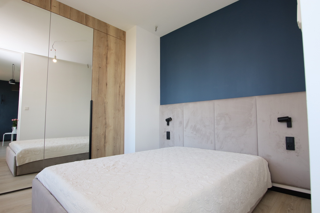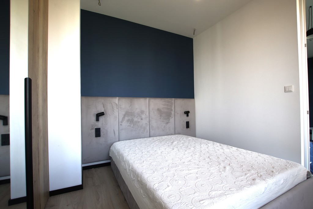 ✔ Sypialnia – przestronna, wyposażona w wygodne łóżko oraz szafę na wymiar,