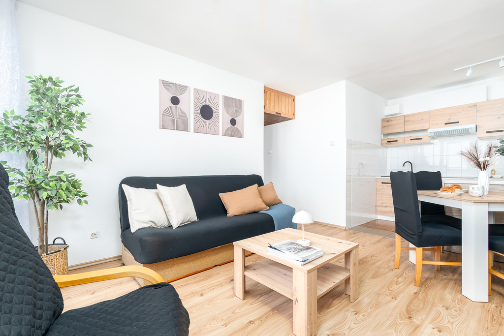 • pełne wyposażenie RTV/AGD i umeblowanie w cenie (m.in. lodówka, piekarnik, płyta indukcyjna, pralka, telewizor)
