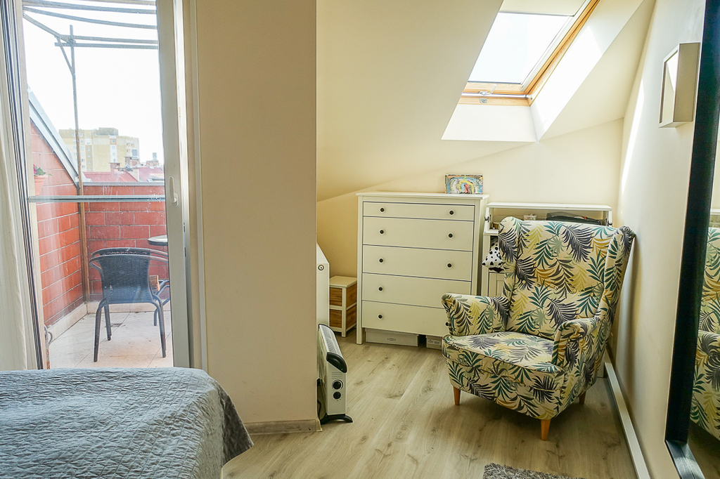 Sypialnia 10m2, z wyjściem na balkon i z wbudowaną szafą,