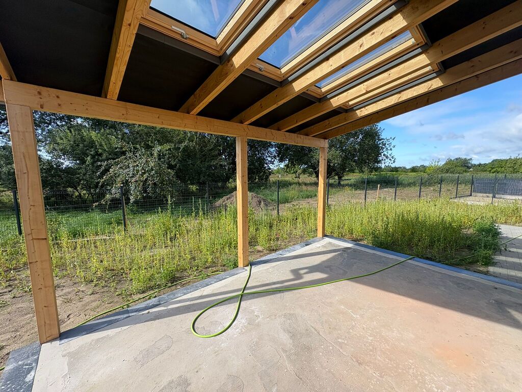 Z salonu wyjście na zadaszony taras i do prywatnego ogrodu o powierzchni 200 m²