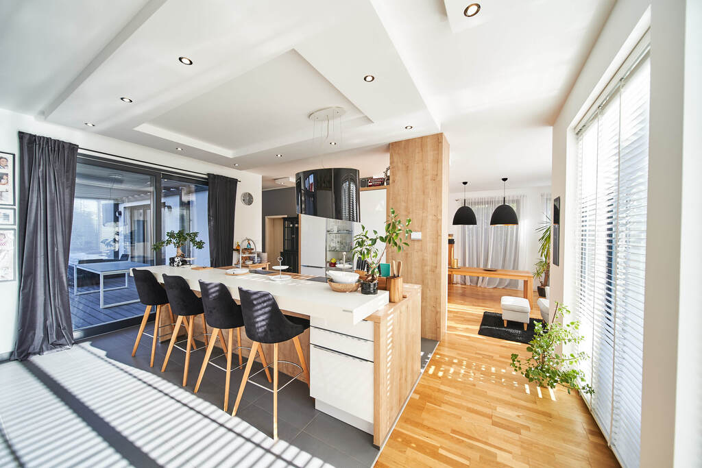 Zabudowy stałe widoczne na zdjęciach pozostają w cenie, pozostałe umeblowanie do uzgodnienia.