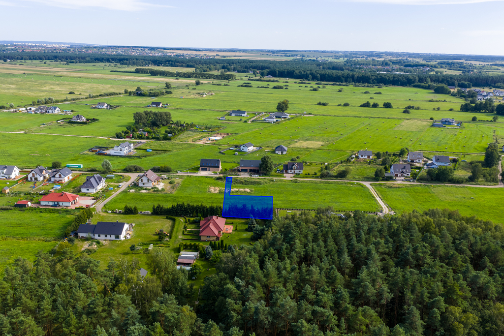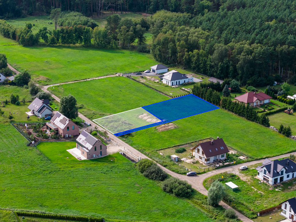 Na zdjęciach działka jest zaznaczona kolorem niebieskim. Działka obok zaznaczona na biało też jest na sprzedaż.