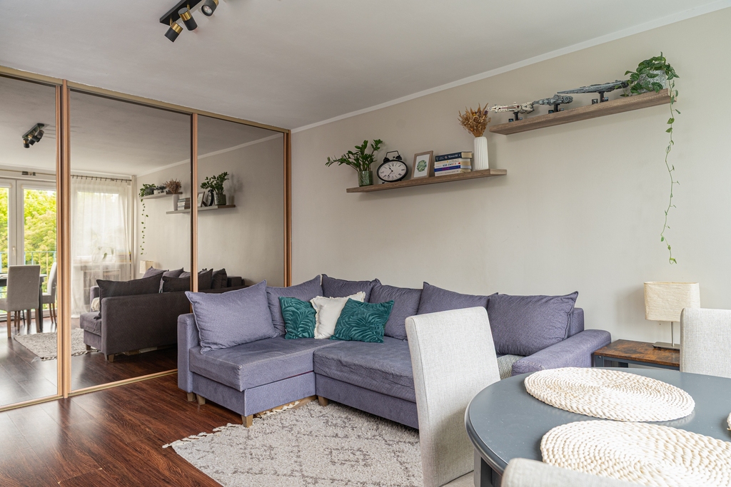 * Przestronny, jasny salon z szafą w zabudowie z lustrami ( 23m2 )