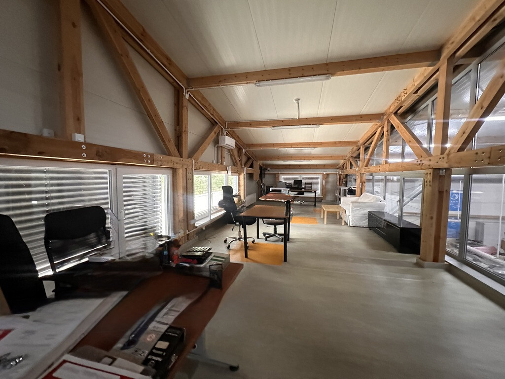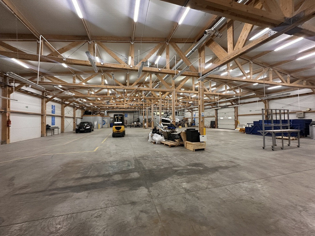 -hala o powierzchni 1181 m2 (wybudowana w 2018 r) – szkieletowa konstrukcja drewniana, nagrzewanie nadmuchowe – piece gazowe- butla. Brama nr 1: szerokość 3,6m, wysokość 3,4. Brama nr 2: szer.3,75, wys.3,8m. Długość hali 45,68m szerokość 24,90m.