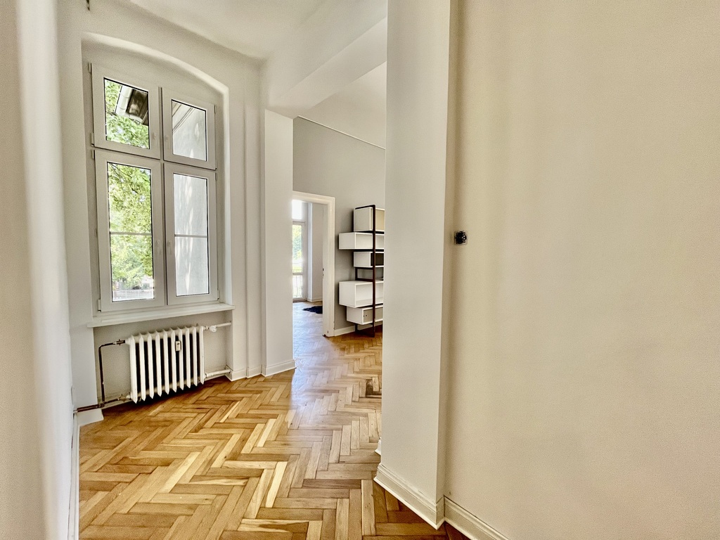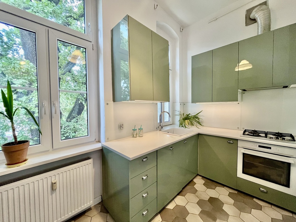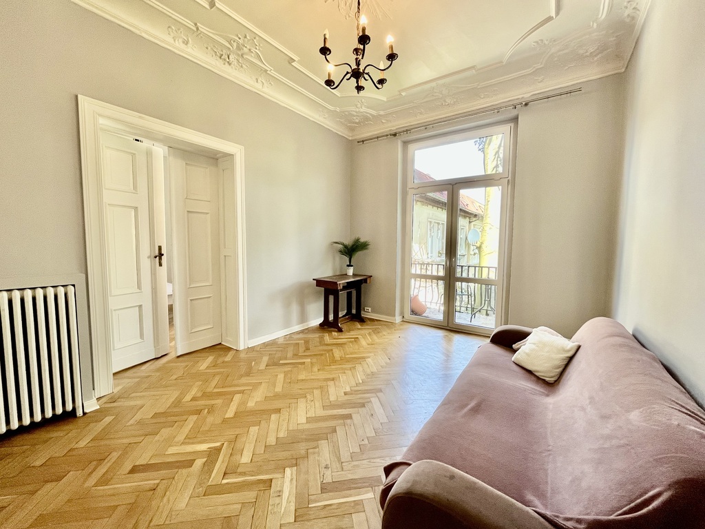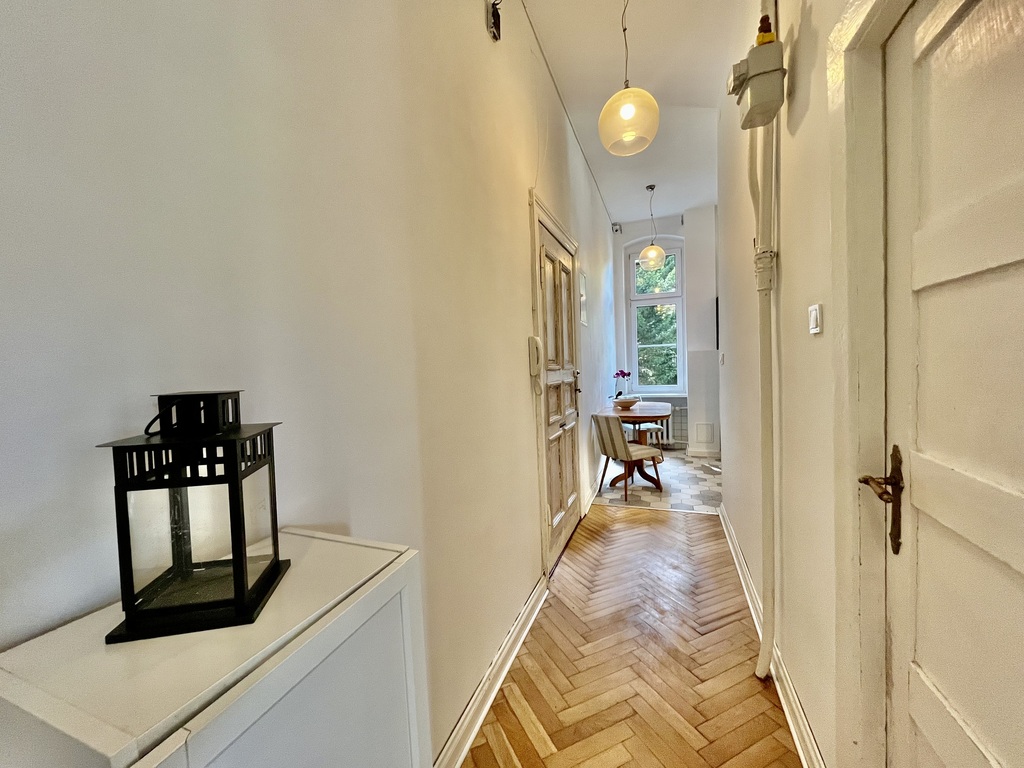Mieszkanie o powierzchni 81,5 m² znajduje się na pierwszym piętrze kamienicy przy spokojnej ulicy w samym centrum Szczecina. W najbliższej okolicy znajdziesz parki, sklepy, restauracje, komunikację miejską oraz wszelkie udogodnienia miejskiego życia.