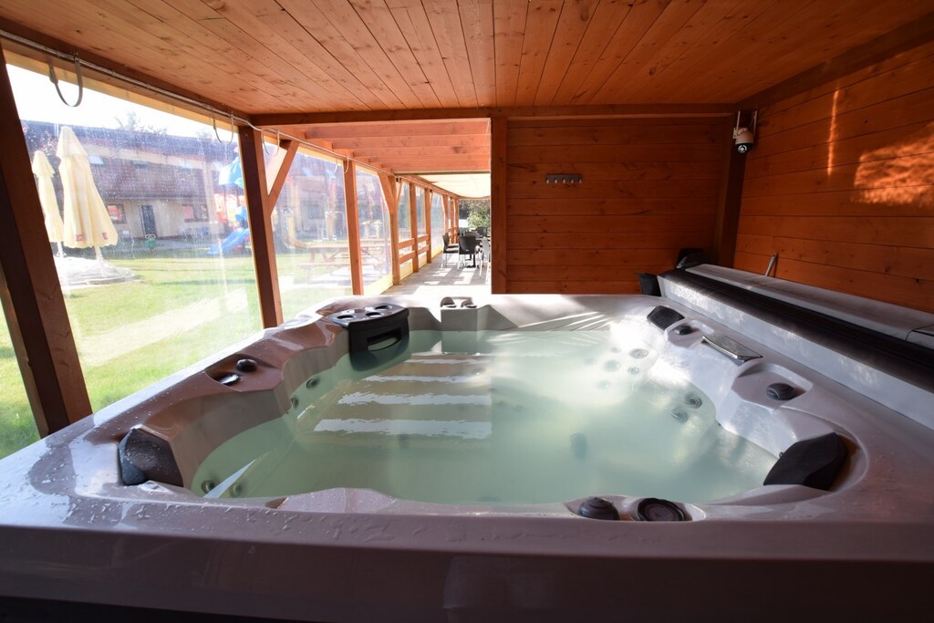 • basen zewnętrzny ( podgrzewany, podświetlany ze strefą rekreacyjną - leżaki)