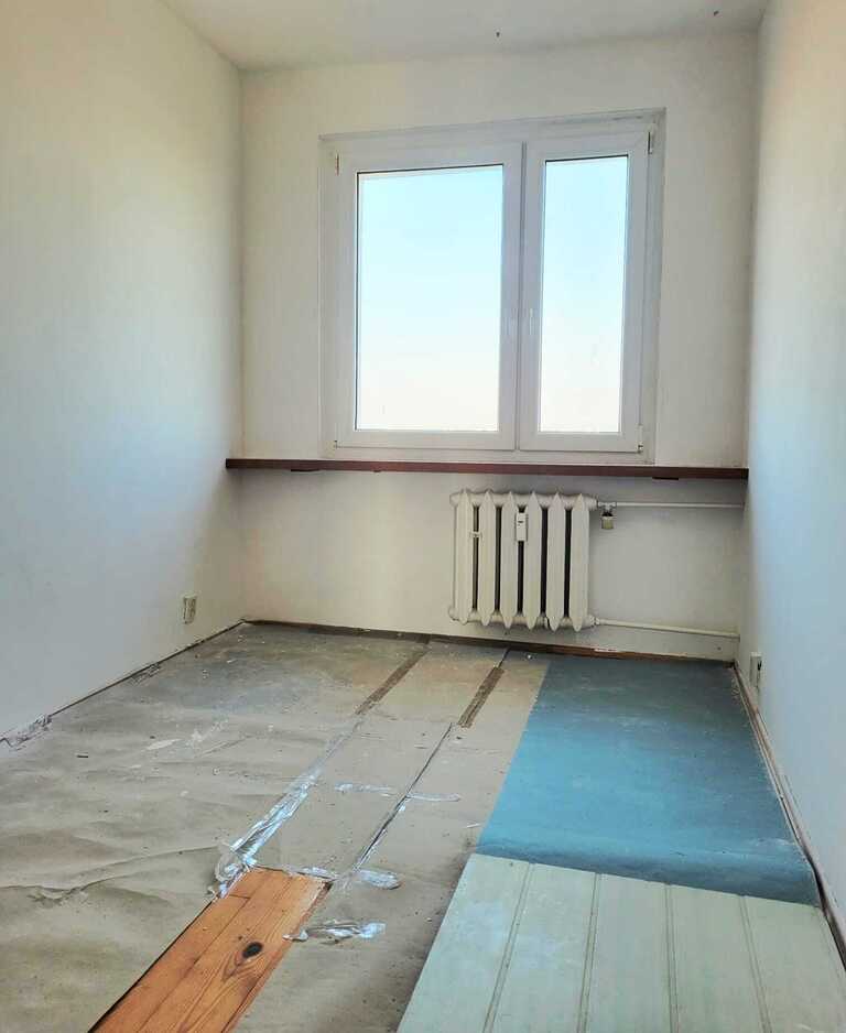 Nieruchomość z potencjałem na 4 pokojowy lokal (bliskość pionów wodno-kanalizacyjnych i wentylacji, umożliwia przeniesienie kuchni do salonu i pozyskania 4 pokoju).