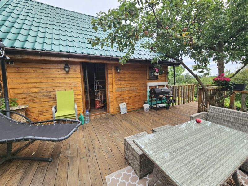 Powierzchnia działki 402m2, na której usytuowany jest piękny, drewniany domek mieszkalny wybudowany w 2015r. składający się