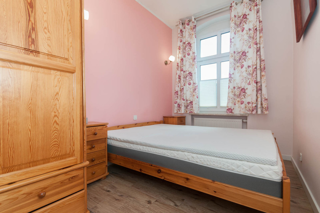 - sypialni (w pokoju znajduje się podwójne łóżko z materacem, szafa oraz szafka nocna)