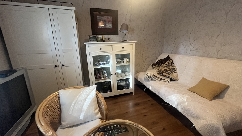 Domek składa się z przestronnego saloniku ,kuchni oraz osobnej łazienki z kabiną prysznicową.