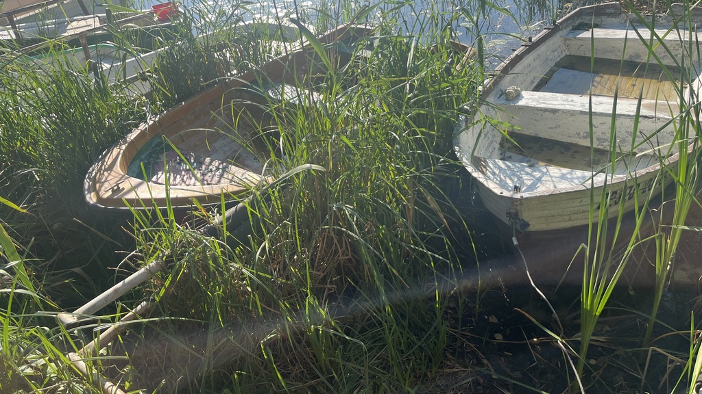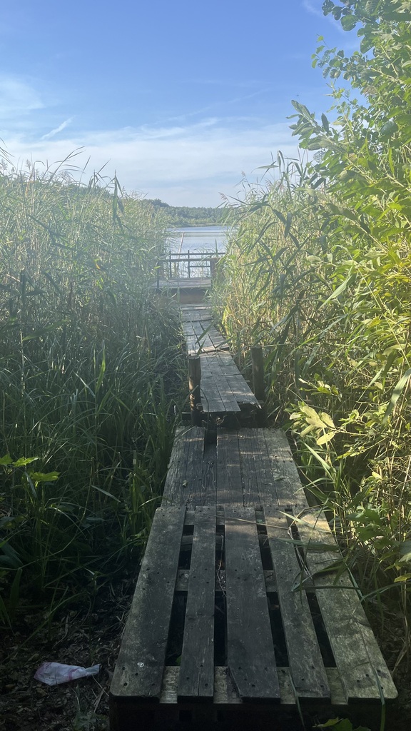 Przy jeziorze przynależne miejsce na cumowanie łódki .
