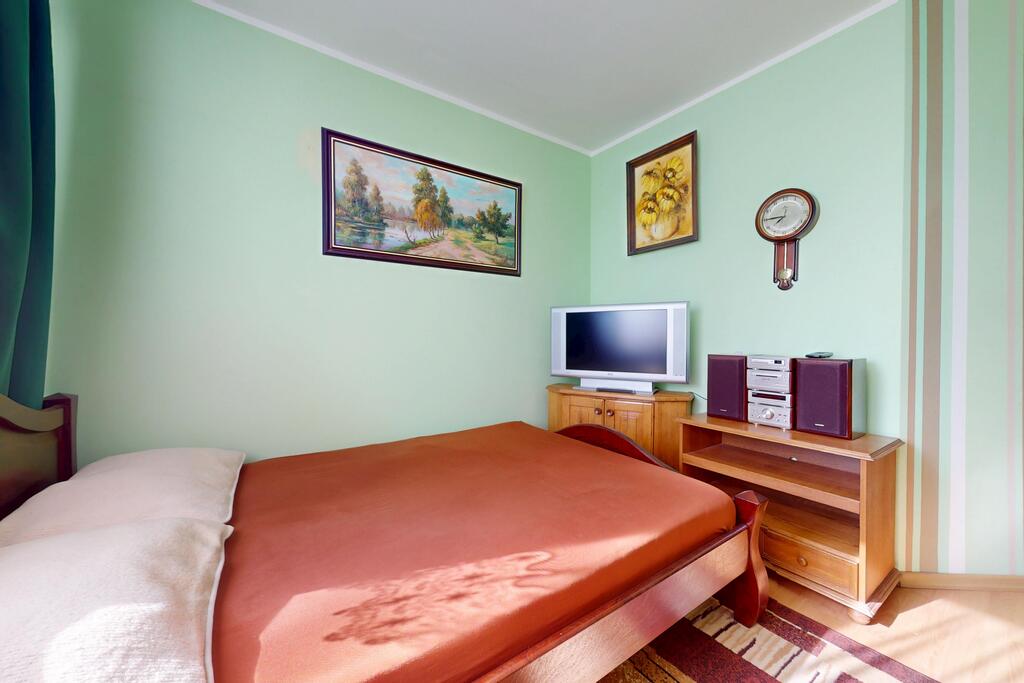 Mieszkanie w pełni wyposażone, wszystko (oprócz dużej drukarki) pozostaje do dyspozycji najemcy, także wyposażenie kuchni w naczynia, sztućce oraz garnki czy też patelnie.