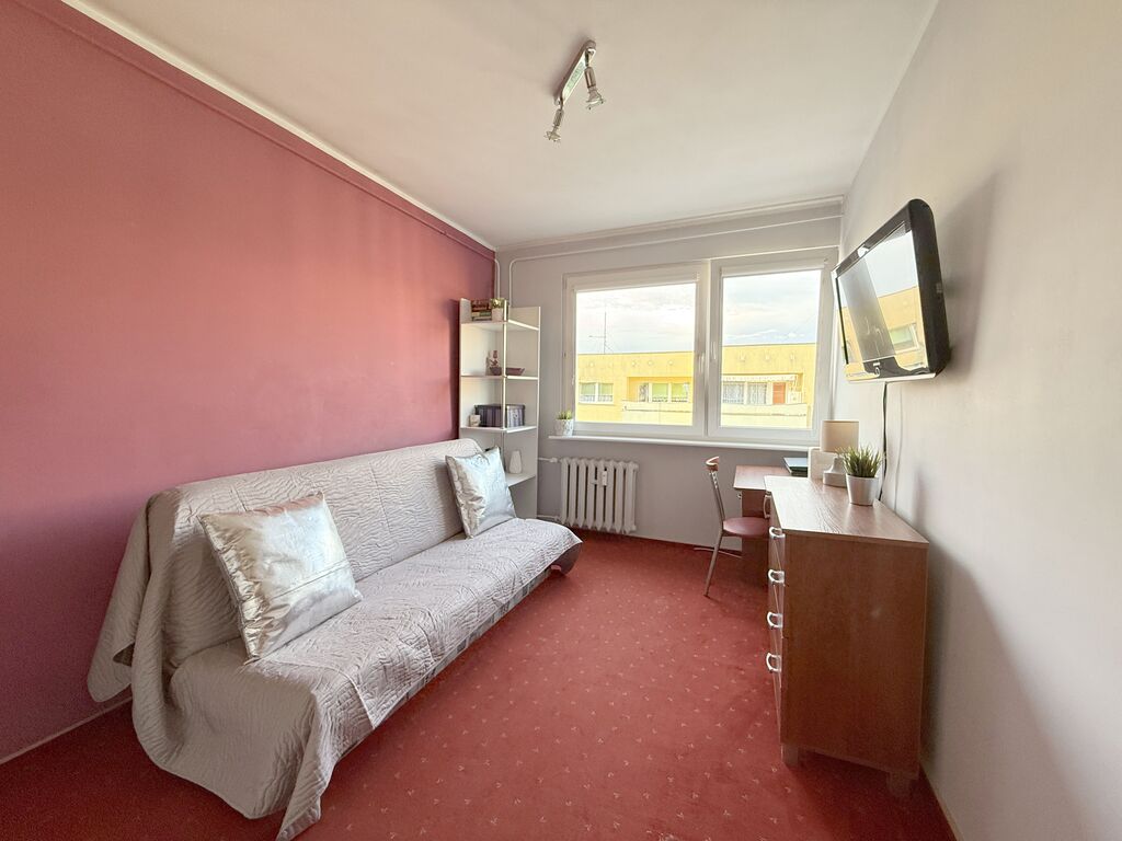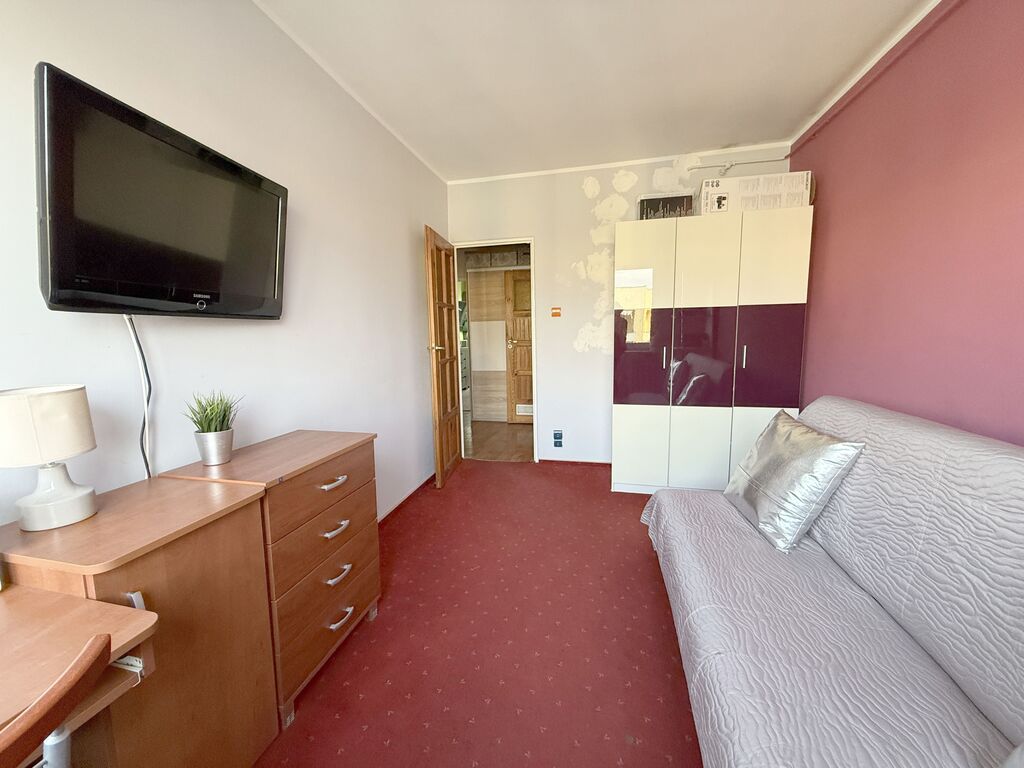 W salonie na podłodze położone są panele, ściany wygładzone i pomalowane. W sypialni na podłodze wykładzina dywanowa, ściany wygładzone i pomalowane.