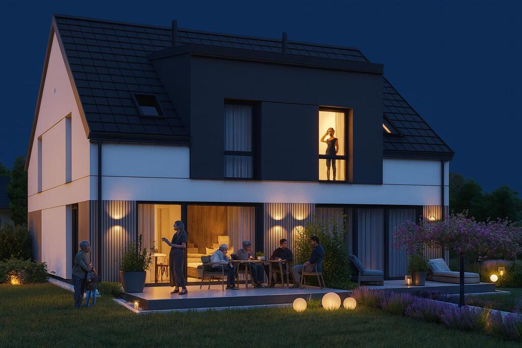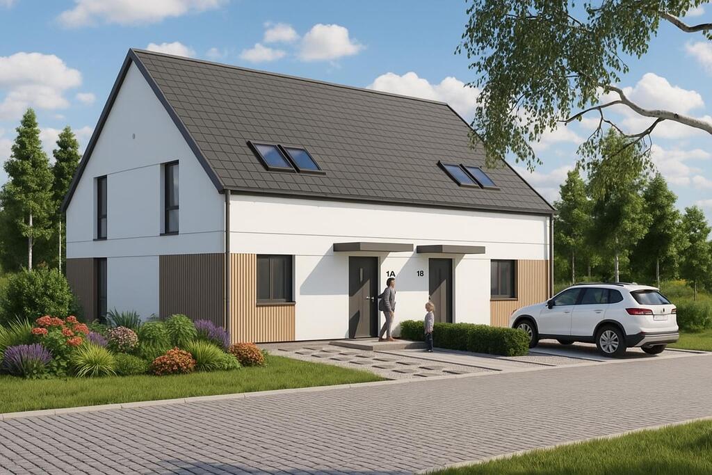 * **Funkcjonalny układ** – typowy bliźniak dający wygodę przestrzeni domowej i prywatność.