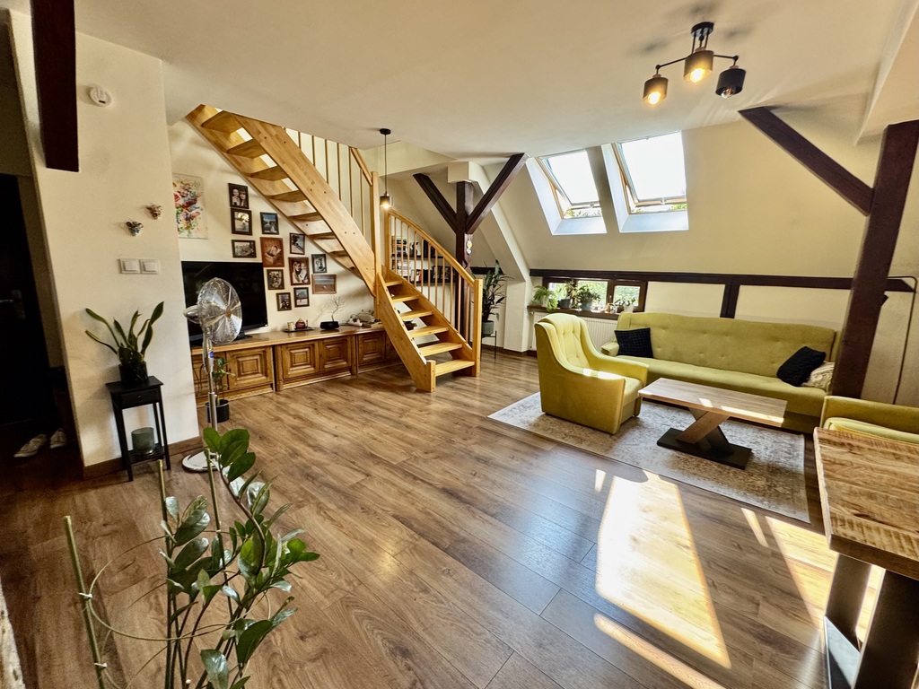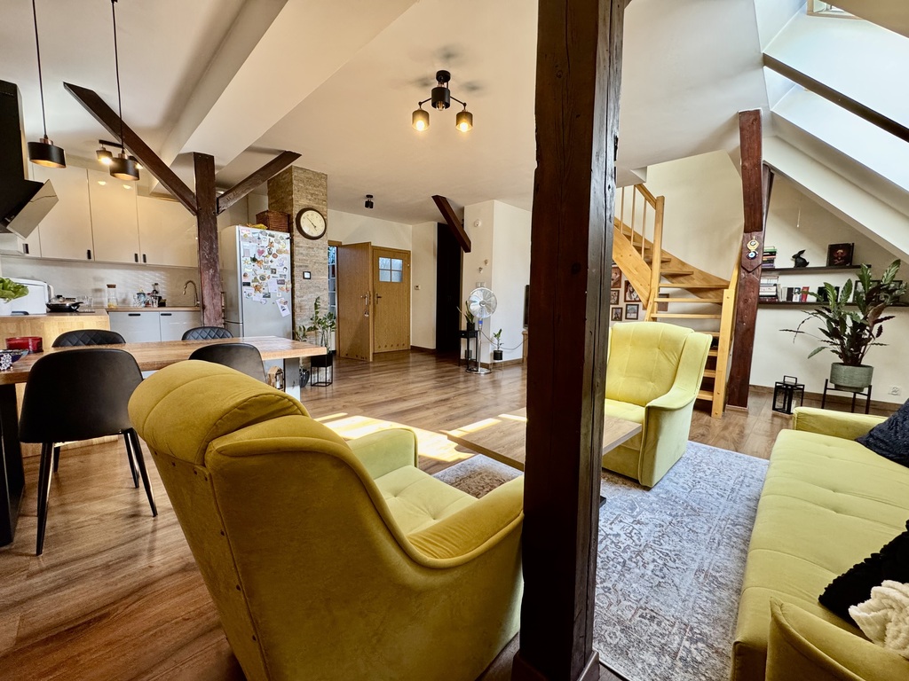 To przestronne, dwupoziomowe mieszkanie o powierzchni całkowitej 98.25m² w tym użytkowej 76,5 m² znajduje się na czwartym piętrze zadbanej kamienicy na szczecińskich Pomorzanach, tuż obok urokliwego parku. Mieszkanie zostało nowocześnie urządzone i jest gotowe do zamieszkania.