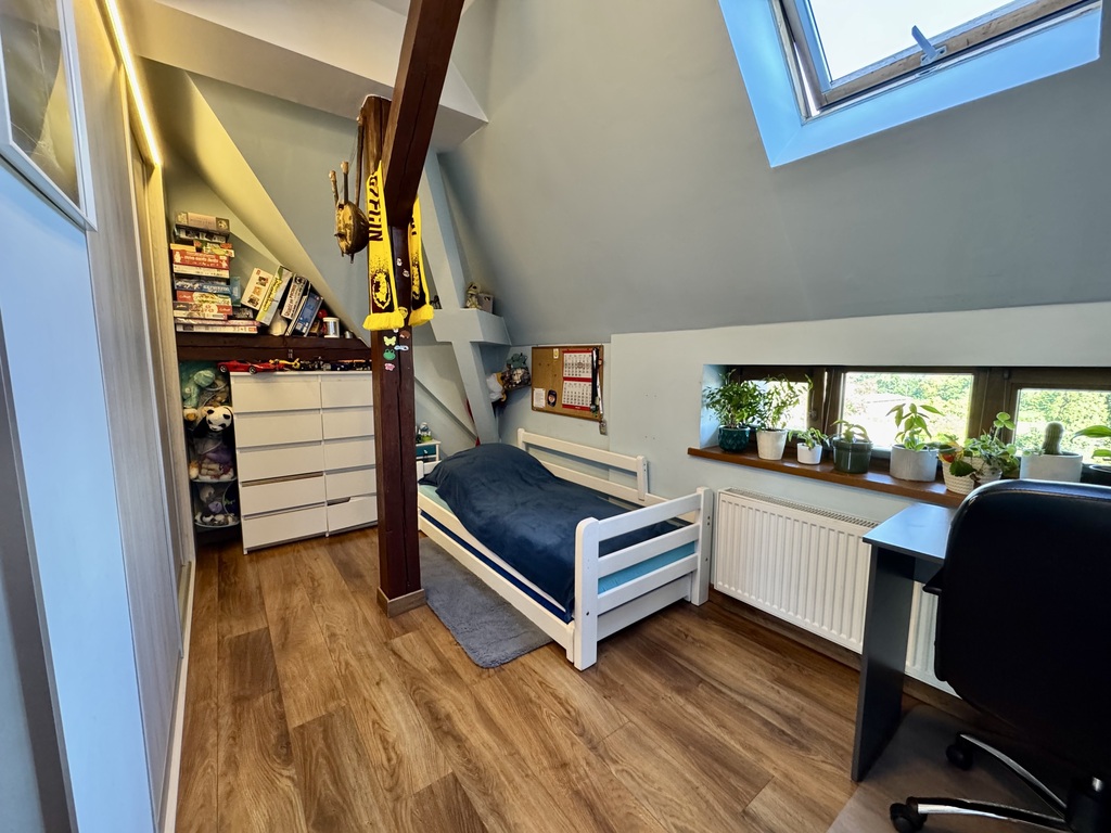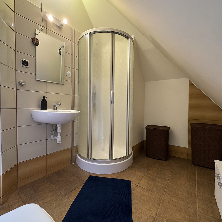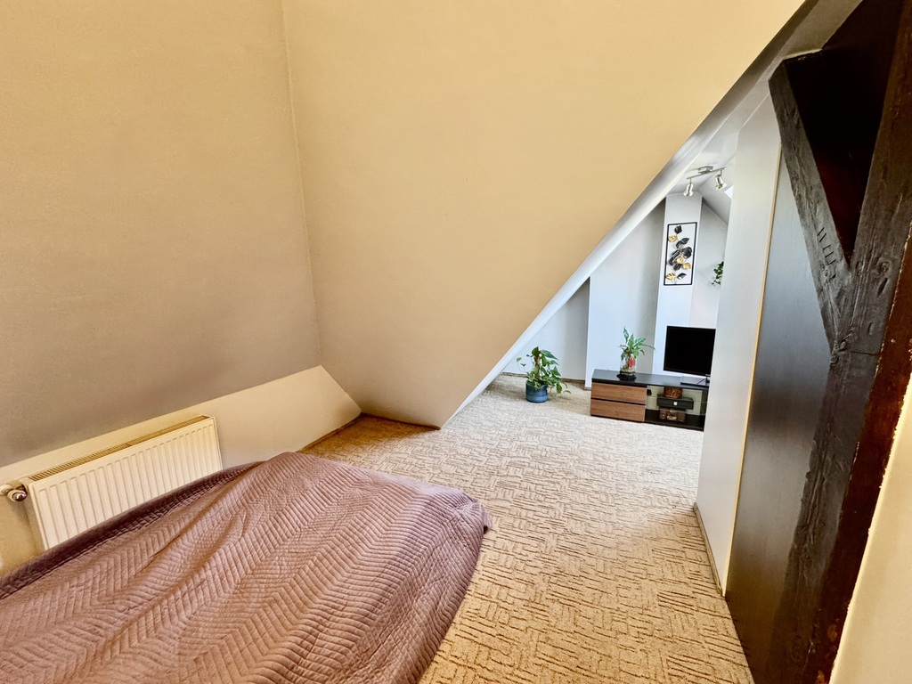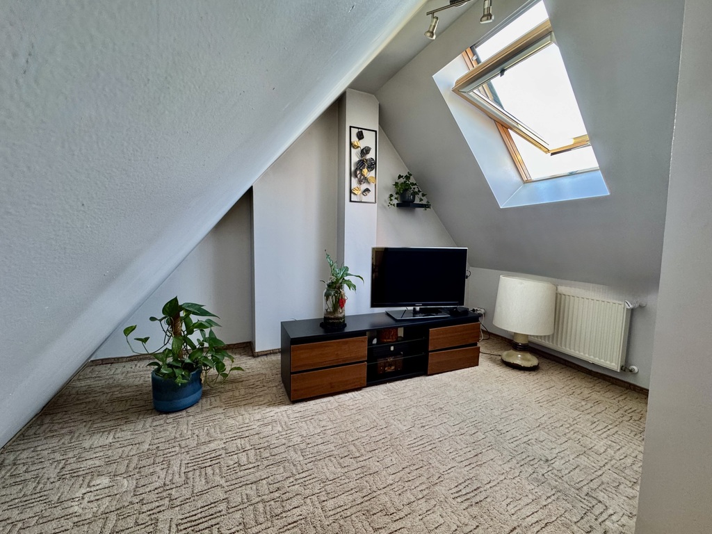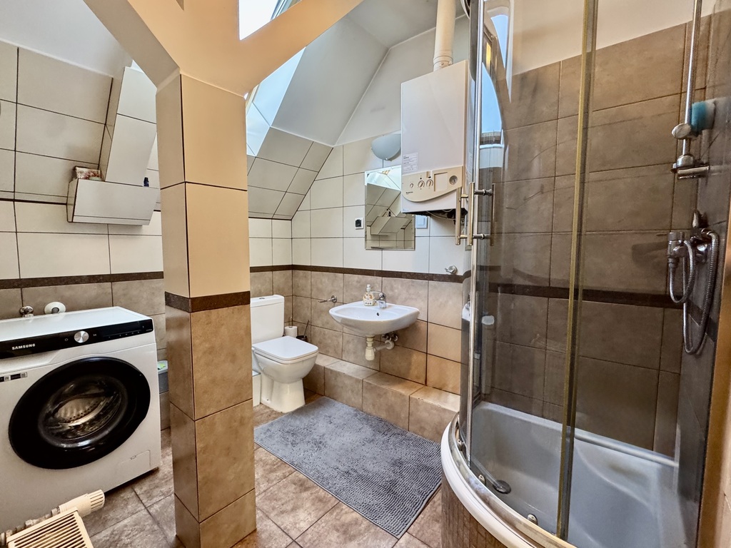 -Drugi poziom to adaptowane poddasze z dwoma przytulnymi pokojami i drugą łazienką, co zapewnia wygodę i prywatność.