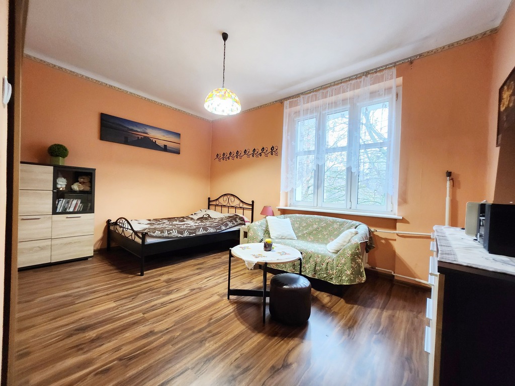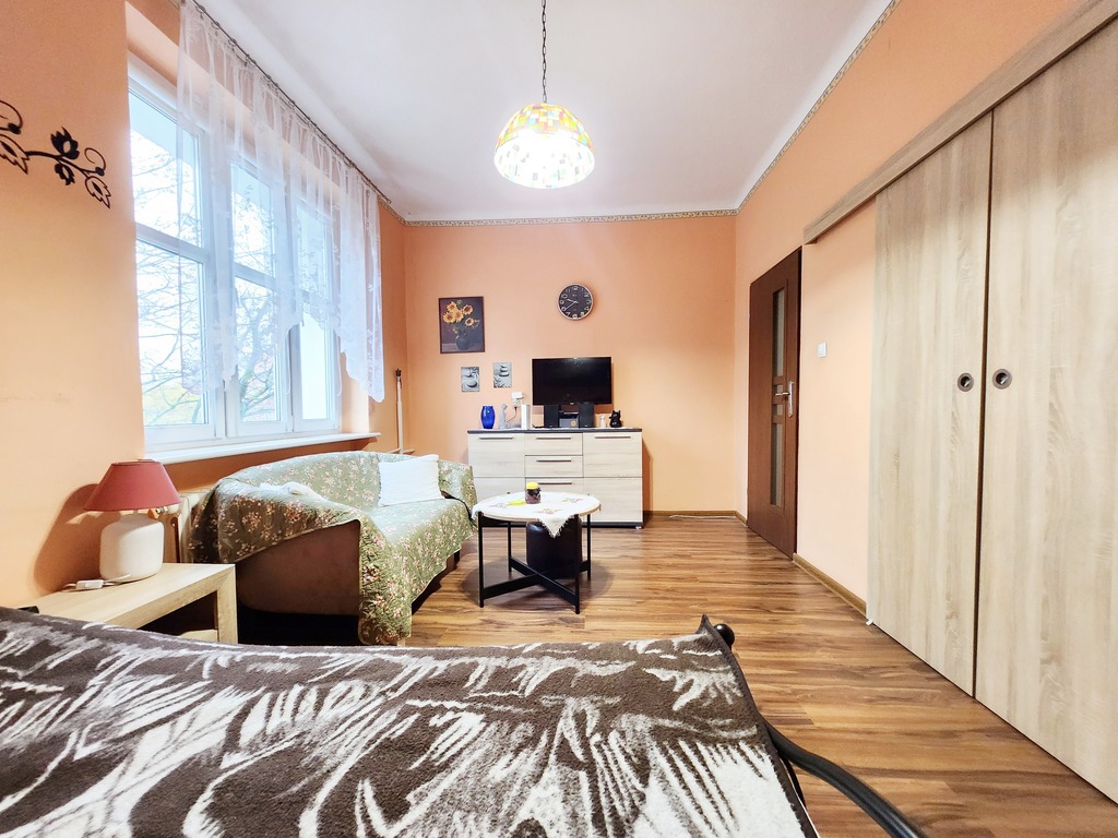 Na powierzchnię nieruchomości składają się przestronny salon o pow. ok. 21 m2, sypialnia o pow. ok. 15 m2 z małą garderobą, widna kuchnia ok. 14 m2 ze spiżarnią, korytarz ok 11 m2 oraz łazienka z WC