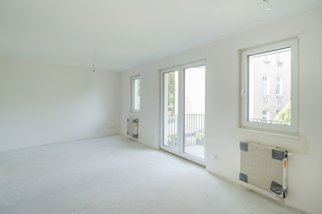 • Przemyślany układ przestrzeni – mieszkanie jest wyjątkowo ustawne, a dzięki sprytnemu rozmieszczeniu ścian i okien można je łatwo dostosować do własnych potrzeb, np. wydzielając dodatkowy pokój.