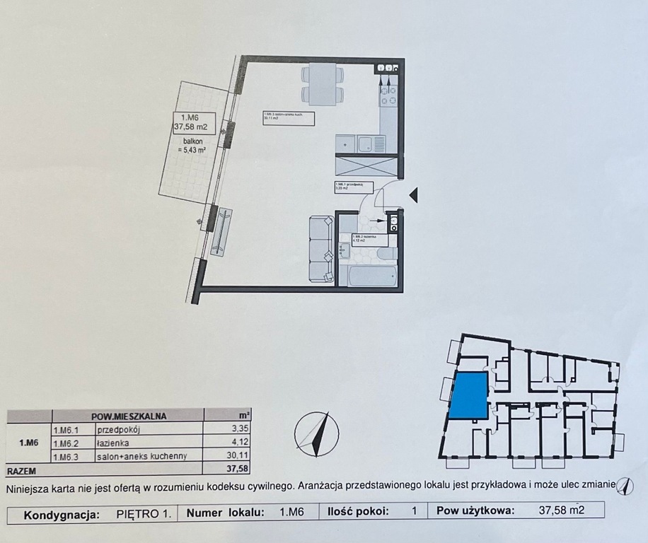 Zapraszamy do zapoznania się z wyjątkową ofertą nowoczesnej i funkcjonalnej kawalerki o powierzchni 37,58 m², położonej na 1. piętrze nowo powstałego budynku przy ul. Rycerskiej w Policach.