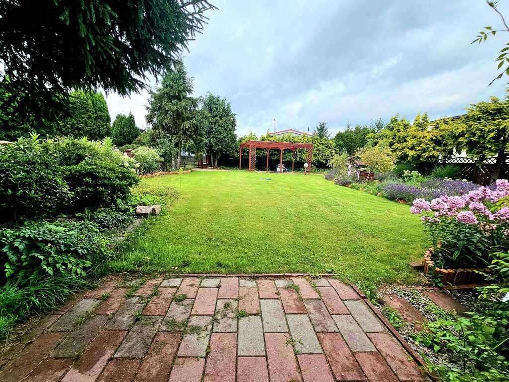 Działka zadbana, zagospodarowana z wieloma nasadzeniami.