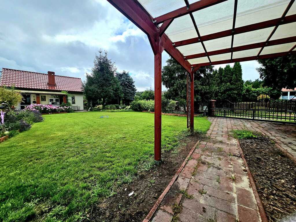 Dodatkowym atutem, wiata na samochód oraz elektrycznie otwierana brama wjazdowa na pilota.