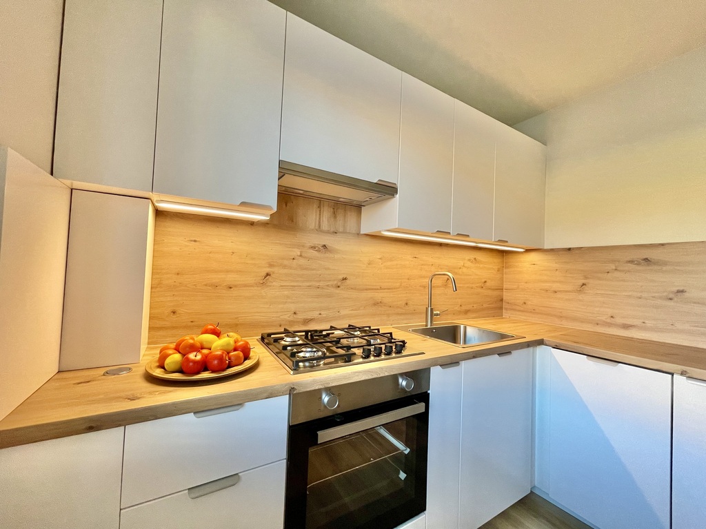 • W pełni wyposażona kuchnia płyta gazowa – wygodne rozwiązanie dla gotujących, dodatkowo lodówka piekarnik, zmywarka okap.