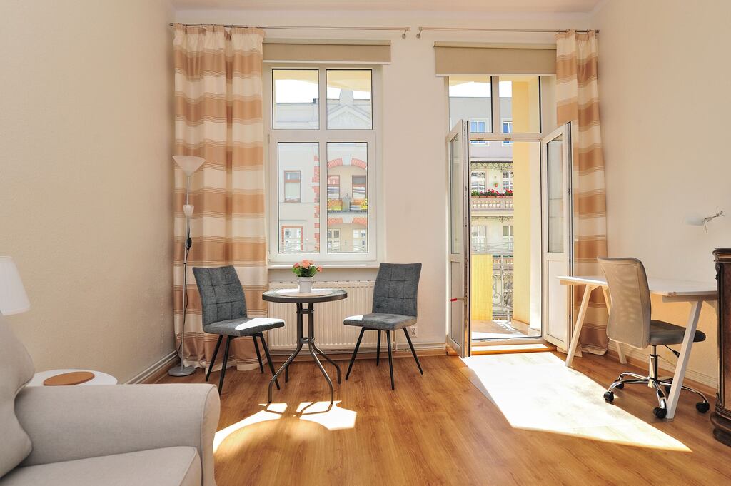 OPIS MIESZKANIA: Do wynajęcia mieszkanie znajdujące się na drugim piętrze IV-piętrowej kamienicy. Jego całkowita powierzchnia wynosi 96,04 m2, jest w pełni umeblowane i wyposażone. W mieszkaniu znajdują się 3 pokoje, kuchnia, spiżarnia, łazienka z WC oraz przedpokój. Łazienka wyposażona jest w kabinę prysznicową, pralkę, umywalkę z lustrem, WC, grzejnik drabinkowy. Kuchnia jest umeblowana i wyposażona w sprzęt AGD - lodówko-zamrażarkę, piekarnik elektryczny, kuchenkę gazową, zmywarkę, kuchenkę mikrofalową, czajnik elektryczny oraz ekspres do kawy. W pokojach znajduje się niezbędne umeblowanie oraz wszystkie elementy, które pokazane są na zdjęciach. W jednym z pokojów znajduje się wyjście na balkon. Dodatkowym pomieszczeniem w mieszkaniu jest spiżarnia, w której można pochować mniej potrzebne rzeczy na co dzień.