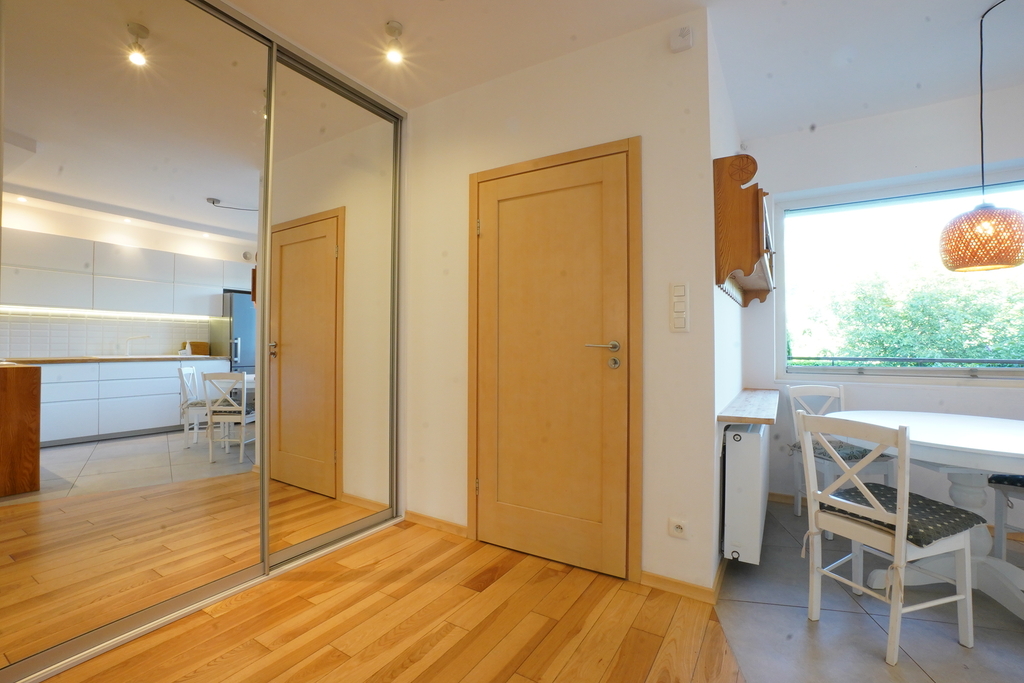 Zapraszam na prezentację domu w zabudowie szeregowej, w bardzo atrakcyjnej lokalizacji, z dala od zgiełku miasta w dzielnicy Gumieńce. Około 2018 roku dom przeszedł remont generalny m.in. z wymianą wszystkich instalacji. W większości pomieszczeń wymieniono okna w 2024 r. na okna 3-szybowe Drutex Iglo Energy, piec kondensacyjny z zasobnikiem i z pogodówką Vaillant ecoTEC plus, ściany budynku 3-warstwowe, docieplone w 2025 r. 10 cm styropianu grafitowego, brama garażowa Nice Design z napędem, otwierana pilotem. Wszystkie ściany na parterze i I piętrze, po obu stronach od sąsiadów zostały wygłuszone wełną i płytami akustycznymi, podłogi na parterze i I piętrze - deska barlinecka jesion; schody i blaty w kuchni jesionowe, drzwi wewnętrzne drewniane. Wyposażenie kuchni: piekarnik i okap - Gorenje, płyta gazowa 5-palnikowa - Freggia, zlewozmywak ceramiczny - Blanco, zmywarka - Candy. Przesyłam wykaz istotniejszych danych dotyczących domu:1. W większości pomieszczeń wymieniono okna w 2024 r. na okna 3-szybowe Drutex Iglo Energy. Została również rozprowadzona instalacja alarmowa, do granicy działki doprowadzony został szybki światłowód Orange. Dodatkowym atutem jest doskonała lokalizacja, dostępność do komunikacji miejskiej, szkół, sklepów czy ośrodków zdrowia, blisko domu znajdują się tereny rekreacyjne np. jez. Słoneczne, ścieżki rowerowe.