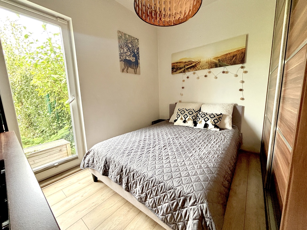 - Gustowna sypialnia z dużą szafą oraz z wyjściem do ogrodu - budzisz się rano i od razu słyszysz śpiew ptaków.
