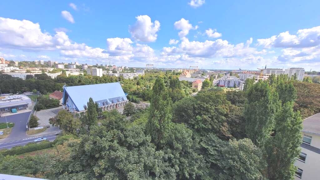 Z jednego z pokoi mamy wyjście na balkon, z którego rozpościera się ładny widok na panoramę Szczecina.