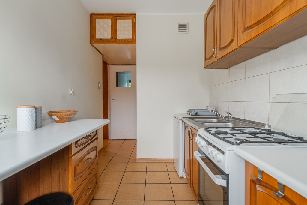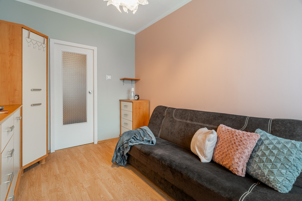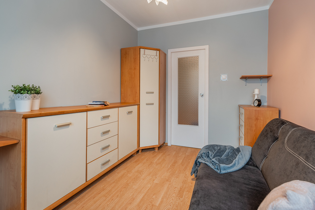 Lokal jest w pełni umeblowany w rozkładane sofę i kanapę  w obu pokojach, komodę, szafki, szafę w zabudowie na korytarzu oraz sprzęty AGD (pralka, lodówka, piekarnik, płyta gazowa, okap).