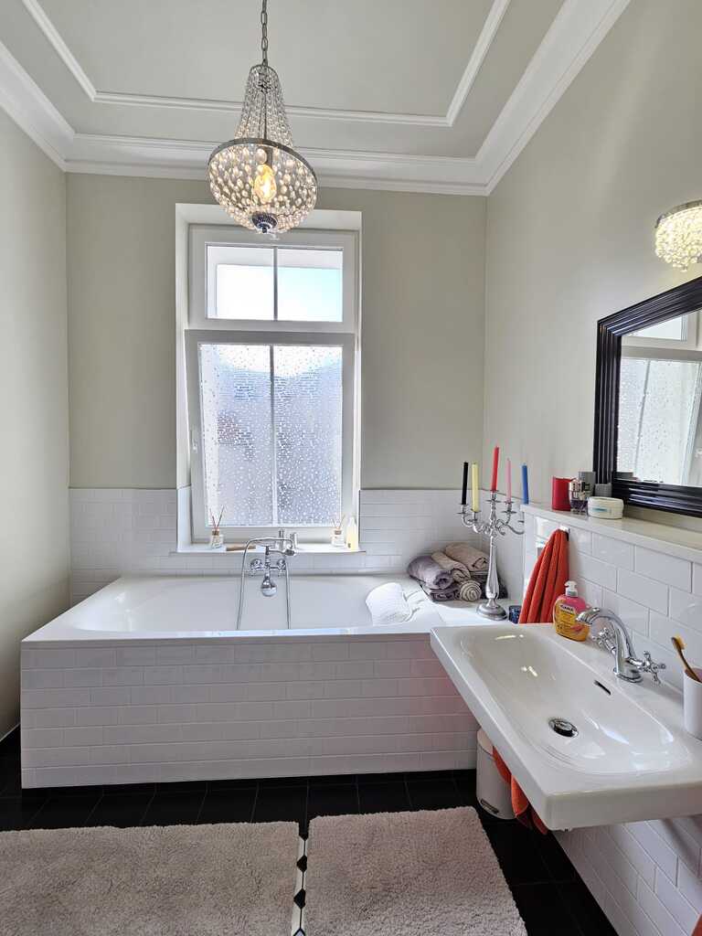 Całość wykończona materiałami najwyższej jakości z dbałością o szczegóły. Nieruchomość po generalnym remoncie. Zostały usunięte stare tynki i położone nowe, szpachlowane ściany i sufity, wymieniona została cała elektryka, instalacja wodno kanalizacyjna, na suficie położona została wełna 20cm oraz folia paro-przepuszczalna, tak jak w nieruchomości piętro niżej, podłoga w sypialni i w gabinecie ocieplona i wygłuszona watą.