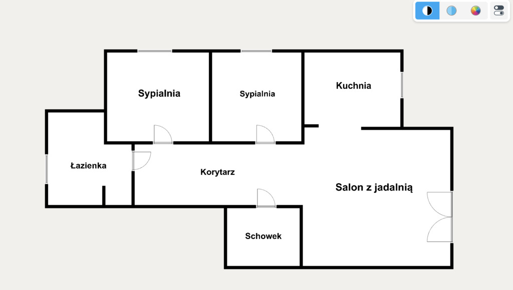 • salon z jadalnią oraz dwie sypialnie,