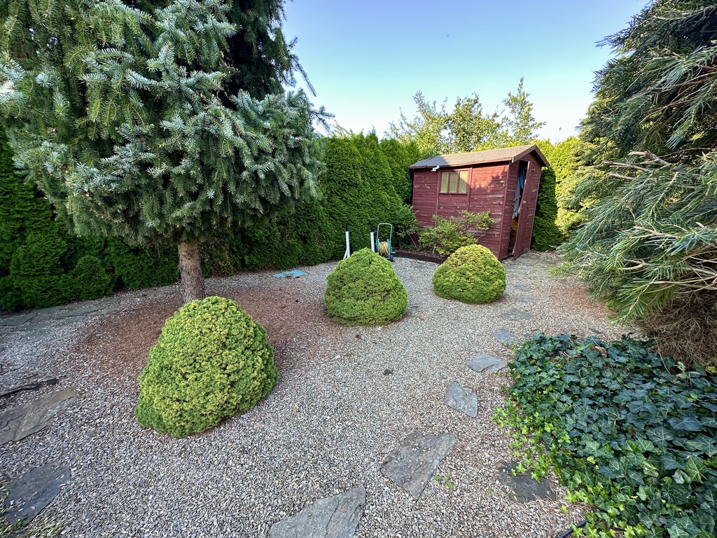 Całość dopełnia system automatycznego, czterostrefowego nawadniania – ogród zawsze wygląda perfekcyjnie, bez dodatkowego wysiłku.