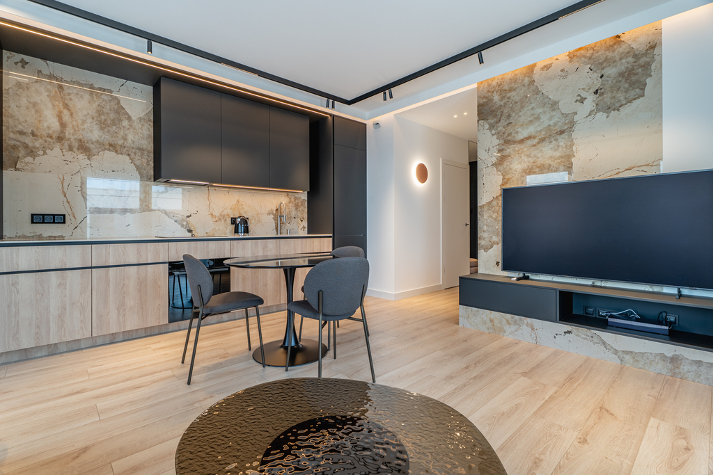 Apartament znajduje się na ostatnim piętrze budynku z windą, co zapewnia ciszę, prywatność i świetny widok. Mieszkanie jest w pełni umeblowane i wyposażone w wysokiej klasy sprzęt AGD i RTV, dzięki czemu gotowe jest do natychmiastowego wprowadzenia.