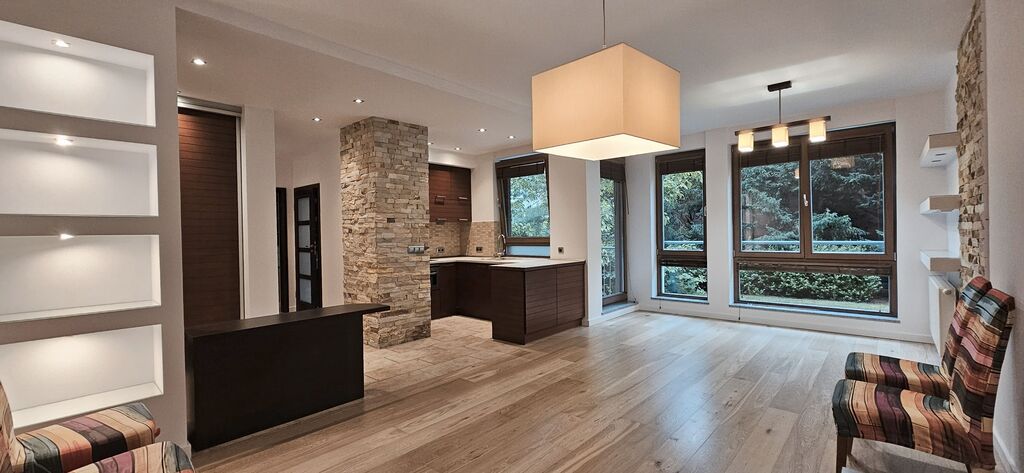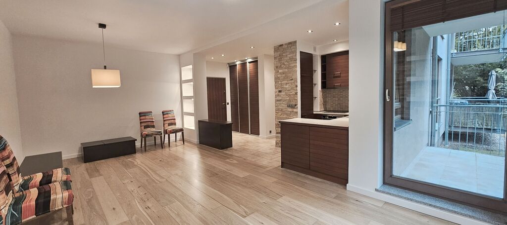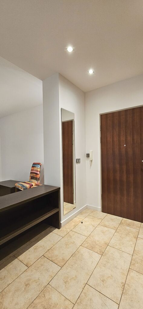 Przedmiotem oferty jest przestronne mieszkanie dwupokojowe, położone na parterze budynku z 2007 r. na ul. Mickiewicza. Osiedle zamknięte. Salon z wyjściem na spory balkon, aktualnie nieumeblowany (istnieje możliwość umeblowania pod najemcę), aneks kuchenny w zabudowie, ze sprzętem AGD. W przedpokoju duża szafa w zabudowie. Łazienka razem z wc,  z kabiną prysznicową, pralką, z oknem. W sypialni duże łóżko (istnieje możliwość dokupienia materaca przez właściciela) oraz bardzo duża szafa w zabudowie. Do mieszkania przynależy piwnica. Istnieje możliwość wynajęcia miejsca postojowego za dodatkową opłatą 300 zł. Na miejscu postojowym można zaparkować dwa auta, z uwagi na brak kolizji z innymi użytkownikami garażu. Koszty miesięczne oprócz czynszu najmu to czynsz do wspólnoty 430 zł (przy zużyciu wody 3m3), c.o. i c.w. z SEC ok 200 zł/m-c zimą oraz prąd. W przypadku osób fizycznych, wyłącznie najem okazjonalny koszt notariusza po stronie właściciela mieszkania.  Przy podpisaniu umowy najmu, wymagana kaucja 3500 zł oraz jednorazowa opłata do biura nieruchomości. Mieszkanie nie jest przeznaczone dla osób ze zwierzętami.