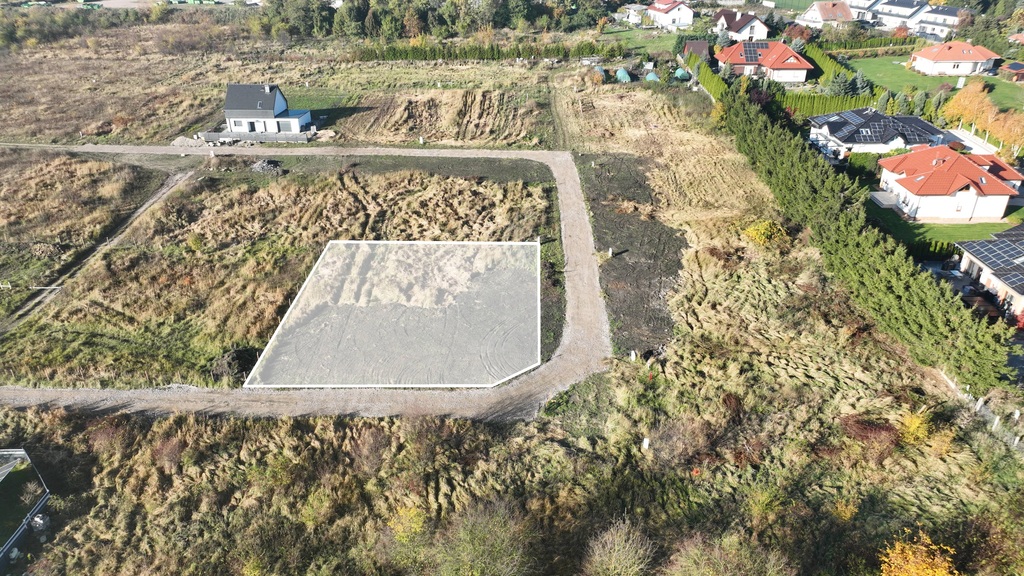 Działka idealnie usytuowana względem stron świata, wjazd od strony wschodniej, ogród od strony południowo-zachodniej.