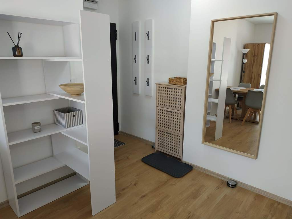 Ciepły klimat mieszkania podkreślają gustownie dobrane meble, wyposażenie, podłogi oraz regulowane pilotem, klimatyczne oświetlenie.