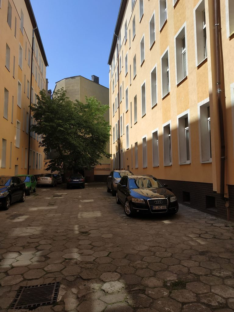Mieszkańcy kamienicy mają możliwość parkowania na podwórzu. Wjazd przez zamykaną bramę.