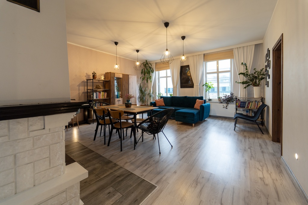 Mieszkanie przeszło kapitalny remont 9 lat temu – zostały wymienione wszystkie instalacje (elektryczna, wodno-kanalizacyjna, gazowa). Zainstalowano nowoczesne ogrzewanie gazowe (piec dwufunkcyjny), co zapewnia komfort i kontrolę nad kosztami ogrzewania. Kominek w salonie to nie tylko dodatkowe źródło ciepła, ale także wyjątkowy element nadający wnętrzu przytulny charakter. Mieszkanie jest ciepłe, jasne i dobrze doświetlone, przez duże okna wpada naturalne światło przez cały dzień. Nieruchomość znajduje się w ścisłym centrum miasta – w bezpośrednim sąsiedztwie dostępna jest pełna infrastruktura miejska: sklepy, restauracje, szkoły, przedszkola, przystanki komunikacji miejskiej, instytucje użyteczności publicznej. Pomimo centralnej lokalizacji, mieszkanie jest ciche – kamienica oddalona jest od głównych arterii komunikacyjnych. Trzyszybowe okna PCV dobrze tłumią wszelkie odgłosy. Na tyłach kamienicy znajduję się duży parking gdzie lokatorzy bez problemu mogą parkować swoje auta a kilkadziesiąt metrów dalej rozciąga się Park Miejski i jezioro.