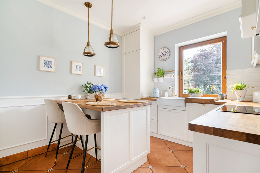 - oddziela kuchnia z wyspą kuchenną, wykonana rok temu, z dbałością o szczegóły - cichy domyk oraz oświetlenie w szufladach, szafkach i cargo, wyspa kuchenna z dużym blatem roboczym, nowy sprzęt AGD, zdobione listwy łączące zabudowę z sufitem