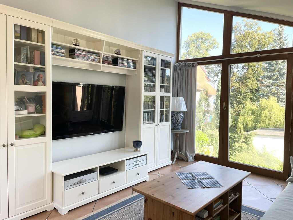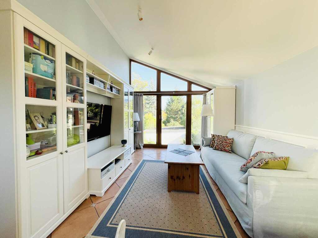 - sypialnia z doskonałym doświetleniem i widokiem na ogród - okna z obu stron pokoju, z czego jedna ze ścian jest cała przeszklona