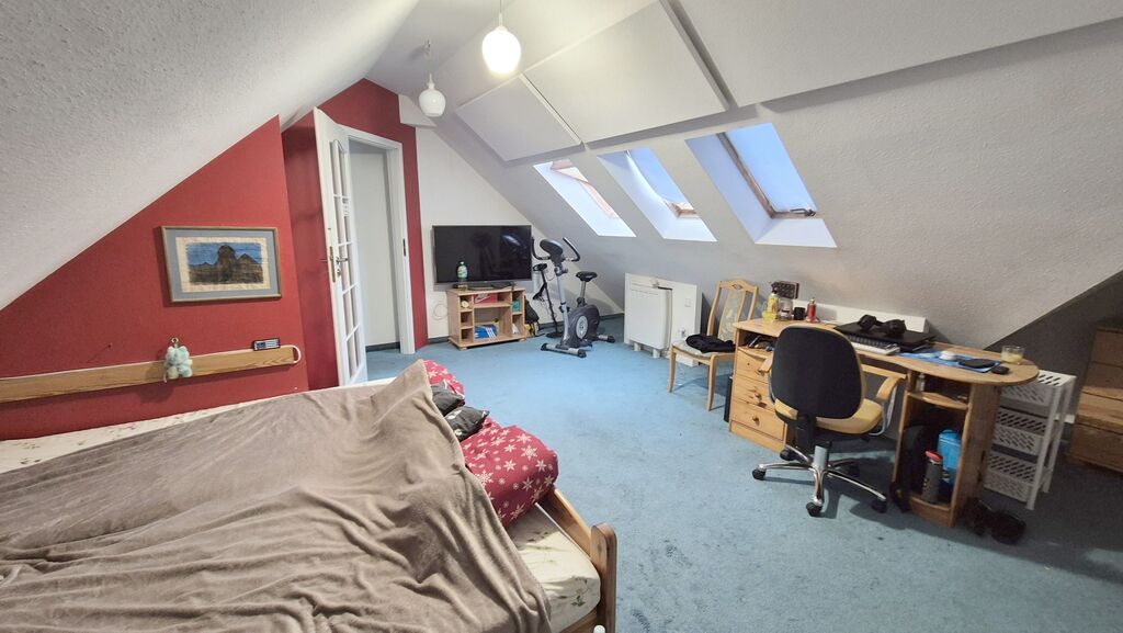 * poddasze gospodarcze, na którym znajduje się sypialnia i garderoba; wejście na poddasze pięknymi mahoniowymi schodami.