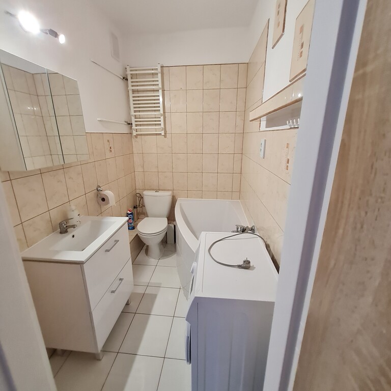 Duża łazienka z wc, z pralką.