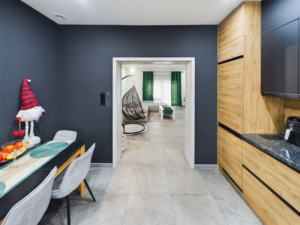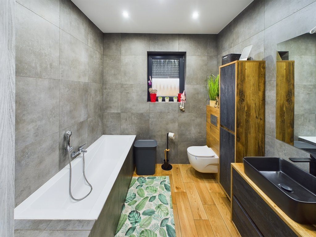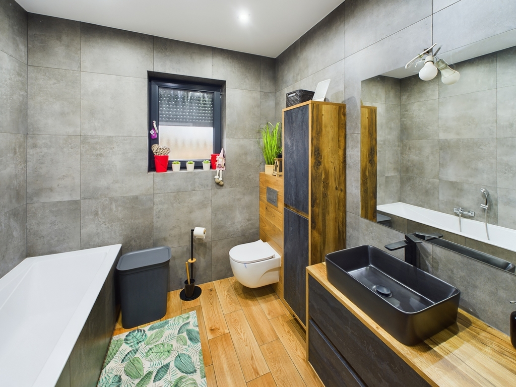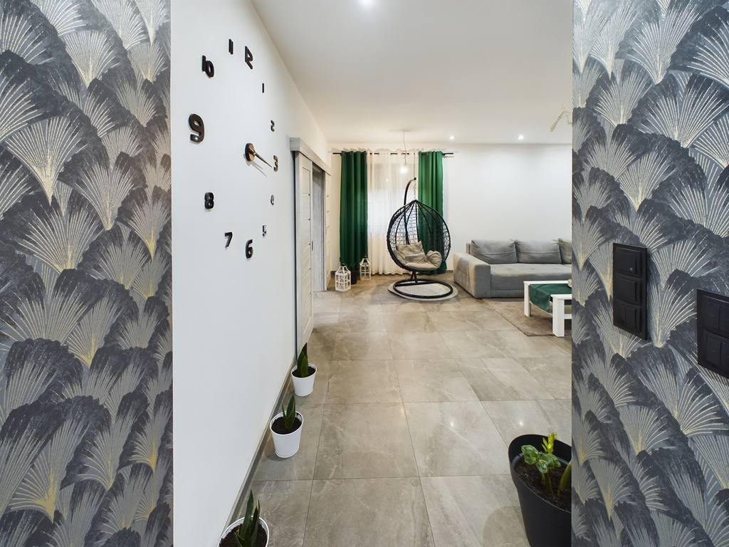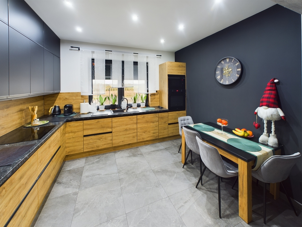 Na powierzchnię użytkową 115 m² nieruchomości składają się: - Salon z wyjściem na zadaszony taras - Widna kuchnia - Łazienka z wanna - Łazienka dla gości - 3 sypialnie - Garderoba - Przedsionek wejściowy - Pomieszczenie Gospodarcze