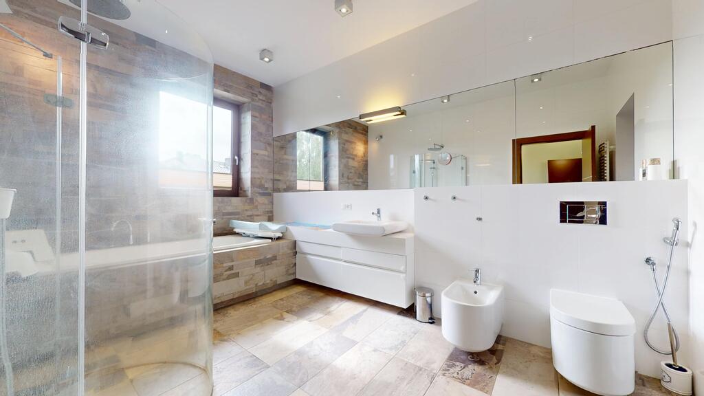 - sypialnia główna z 2 garderobami oraz własnym salonem kąpielowym (także z wyjściem na taras)