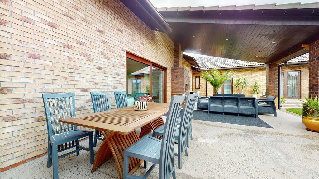 Otoczenie domu stanowi pięknie zagospodarowany ogród z licznymi nasadzeniami, zmodernizowany i na nowo zaaranżowany w 2024 roku. Wyznaczonych zostało kilka stref relaksu-do największych z nich należy zaliczyć duży 80 m2 taras, częściowo zadaszony, wykonany z kamienia naturalnego Lastrico, gdzie nasz czas będzie umilał widok nowoczesnej fontanny, a o klimat zadba kominek oraz własna wędzarnia.